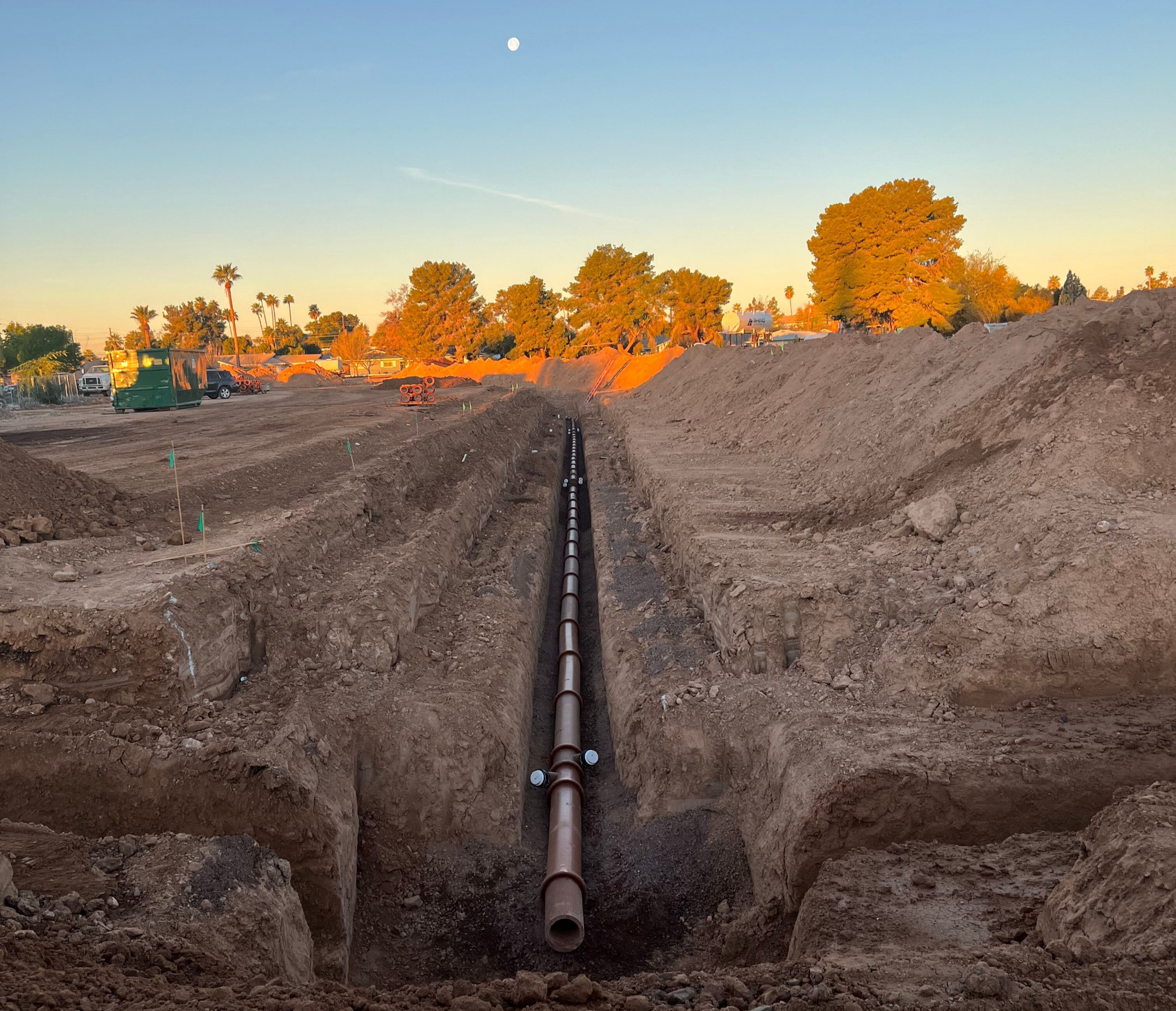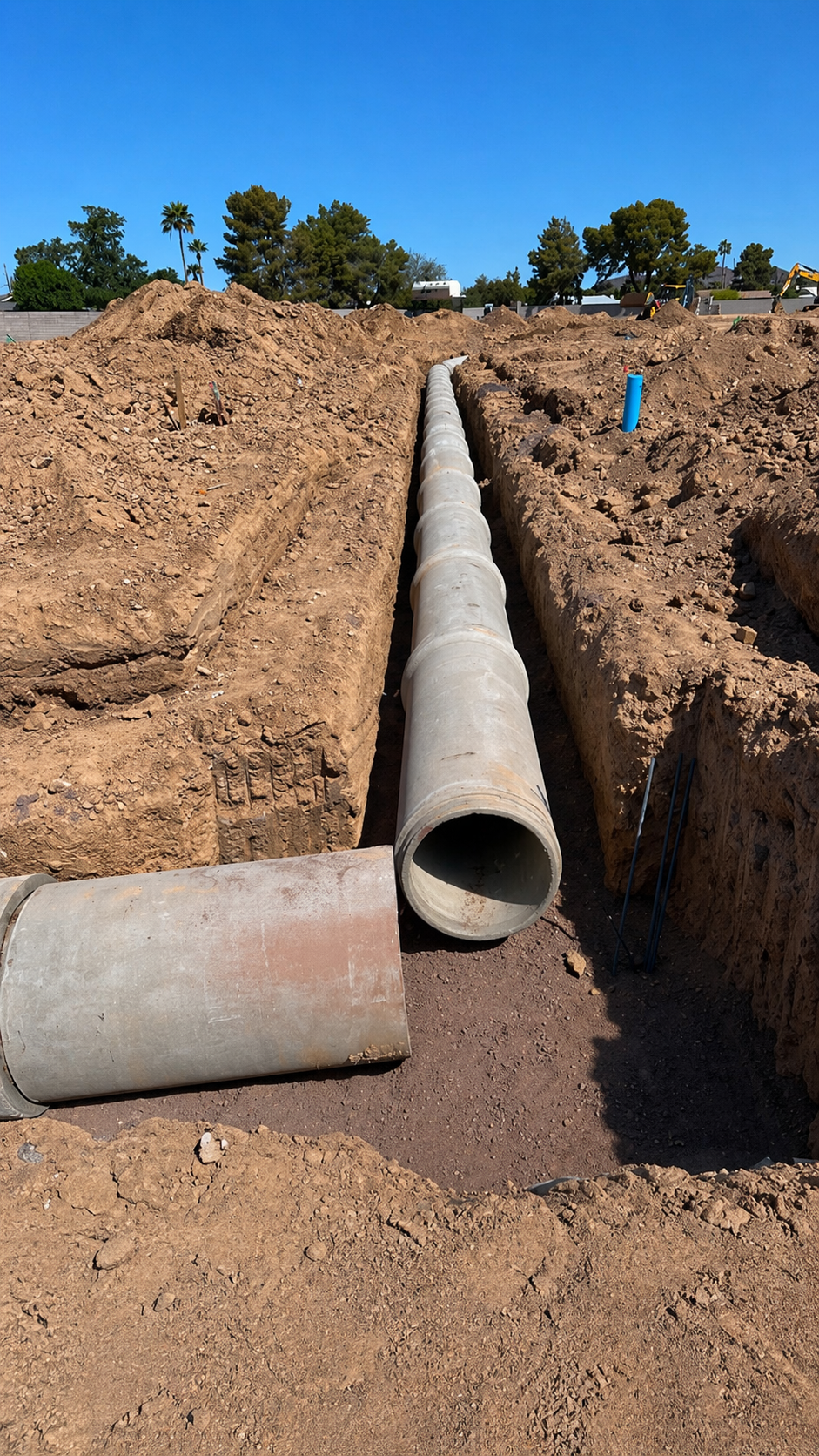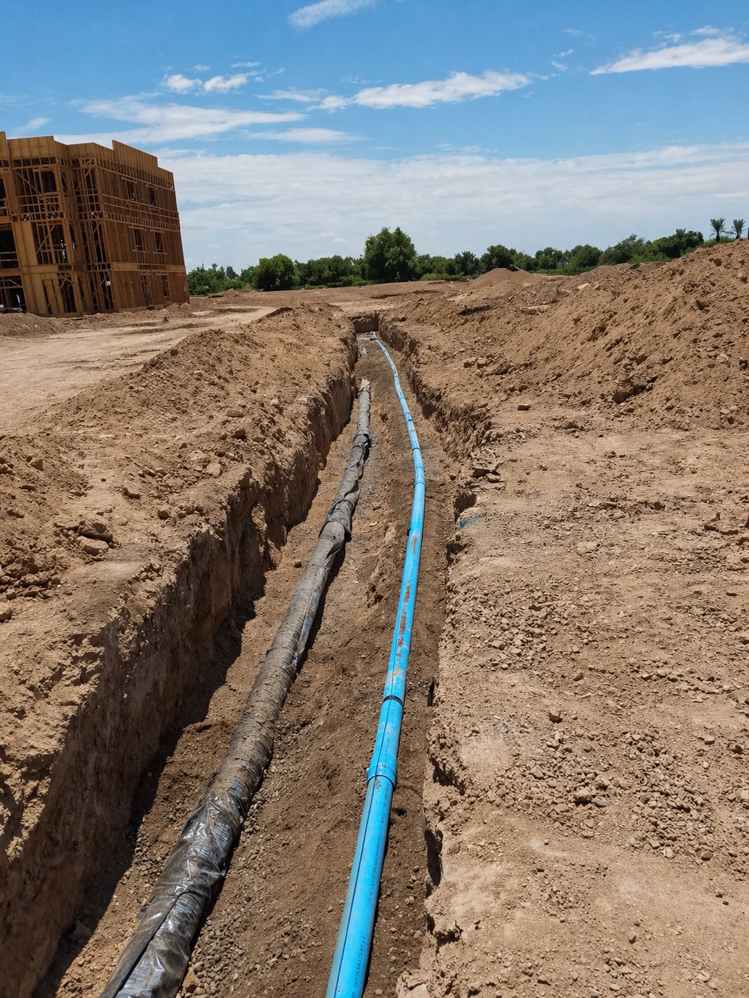 Installation of underground domestic water and fire line systems, including trenching, pipe placement, and backfill in accordance with project specifications and industry standards. Work includes proper alignment, compaction, and preparation for testing and final connections, ensuring a reliable and code-compliant utility infrastructure.