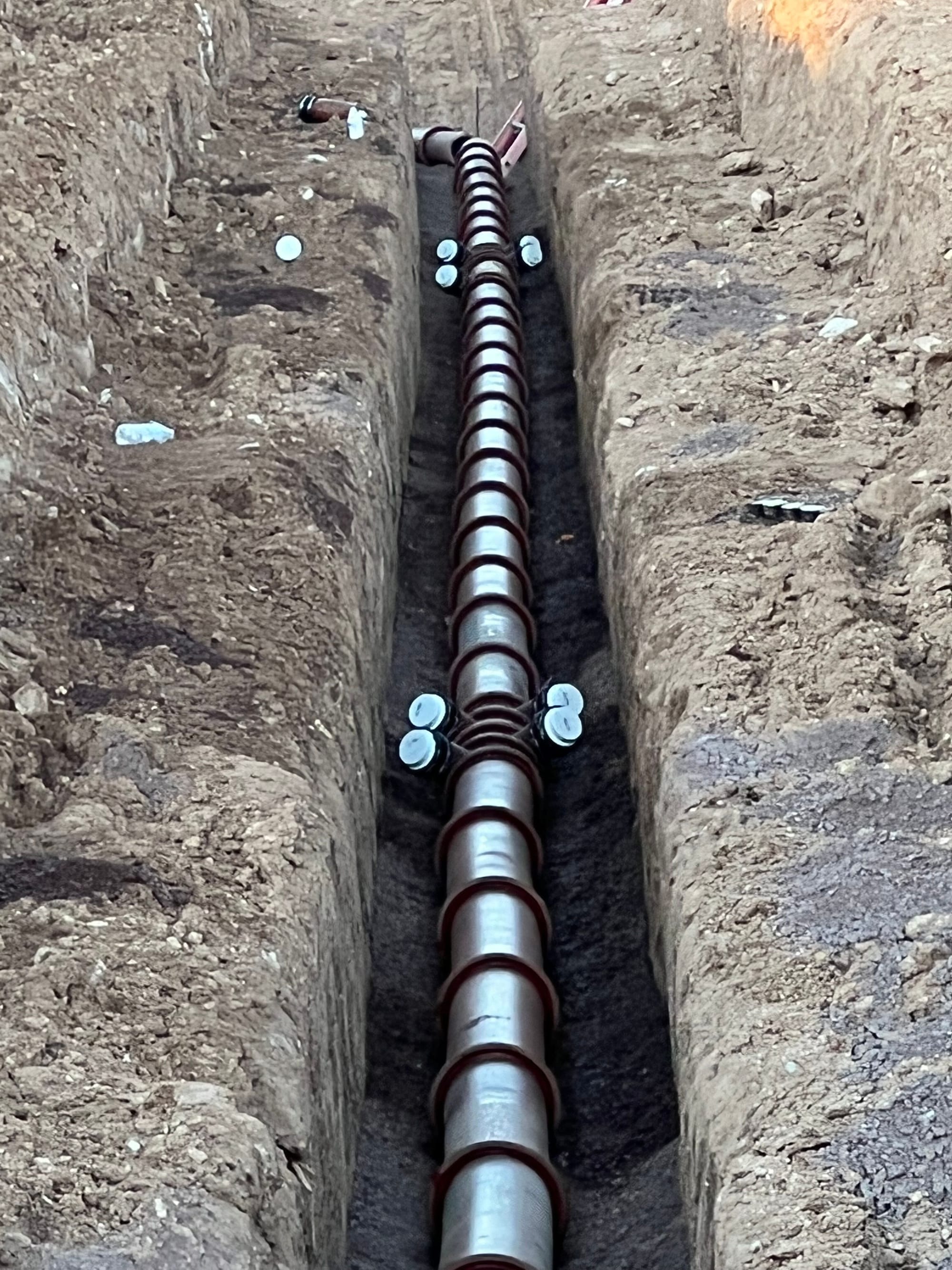 Installation of ductile iron pipe (DIP) water main including trench excavation, bedding preparation, pipe alignment, joint assembly, and backfill. Work performed to ensure system integrity, pressure performance, and long-term reliability.